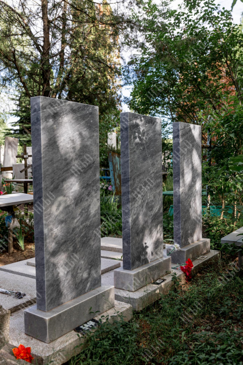 Семейное захоронение, сочетающее в себе три идентичных ритуальных изделия с закрытым надгробием. Прямоугольные стелы, выполненные в светлом оттенке, выглядят лаконично и сдержанно. Закрытое надгробие ровное, правильной прямоугольной формы. Такая комбинация элементов памятника смотрится сдержанно и лаконично. Соотношение форм, размеров и объемов ритуального изделия исключает его просадку и искажение со временем. Такой памятник будет выделяться среди прочих и не потребует особого ухода.