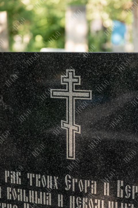 Горизонтальный семейный памятник с вазой , лампадой и закрытым надгробием. Невысокая надгробная стела прямоугольной формы содержит фото, информацию об усопших и изображение креста. Она отлично сочетается с закрытым гранитным надгробием. Такое решение является практичным и значительно упрощает уход за ритуальным изделием. Размеры памятника тщательно проработаны специалистами, что гарантирует конструкции долговечность и надежность.